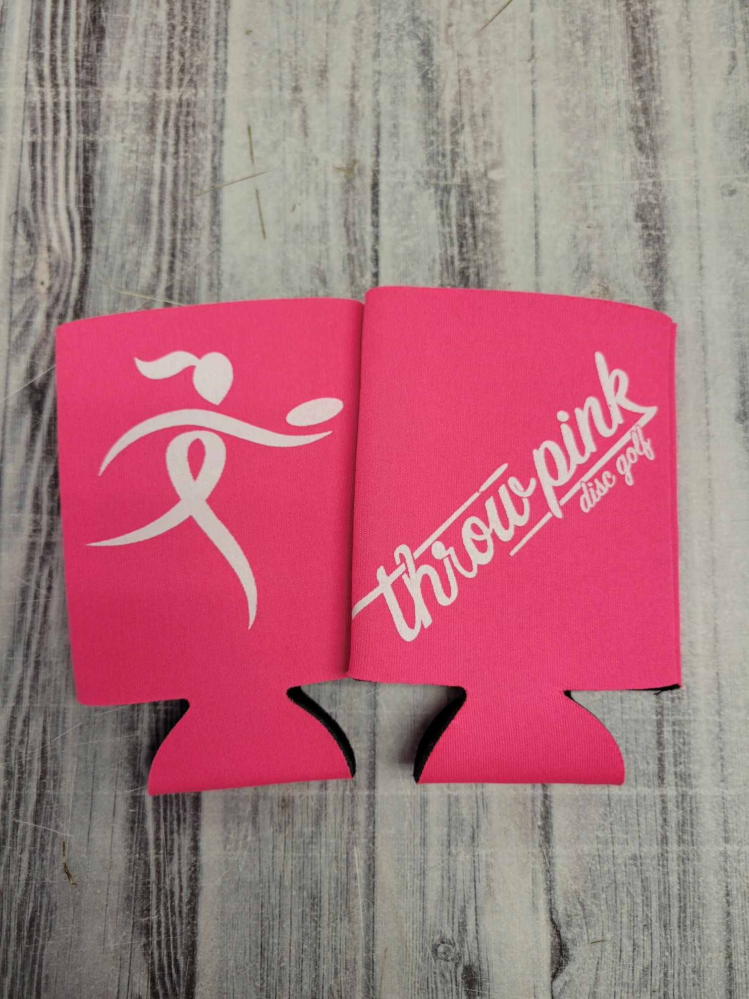 The photo shows the front and back of the can koozie.